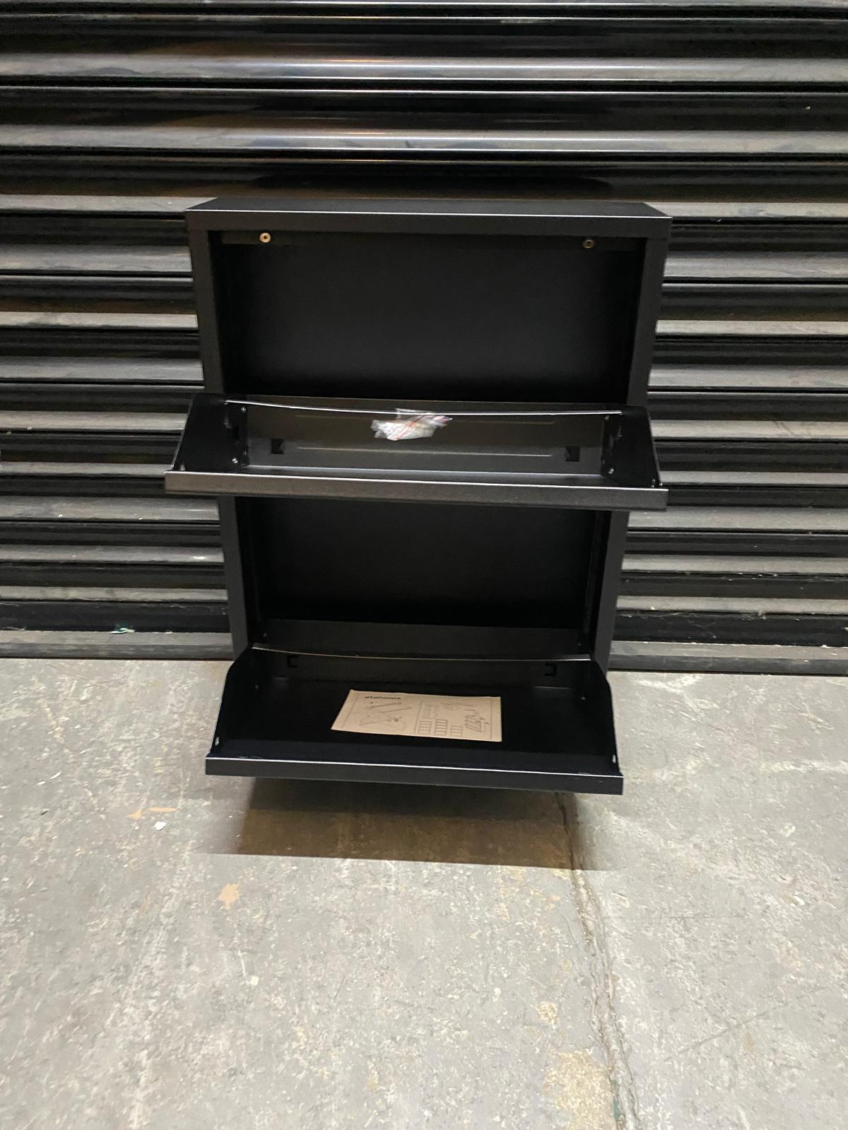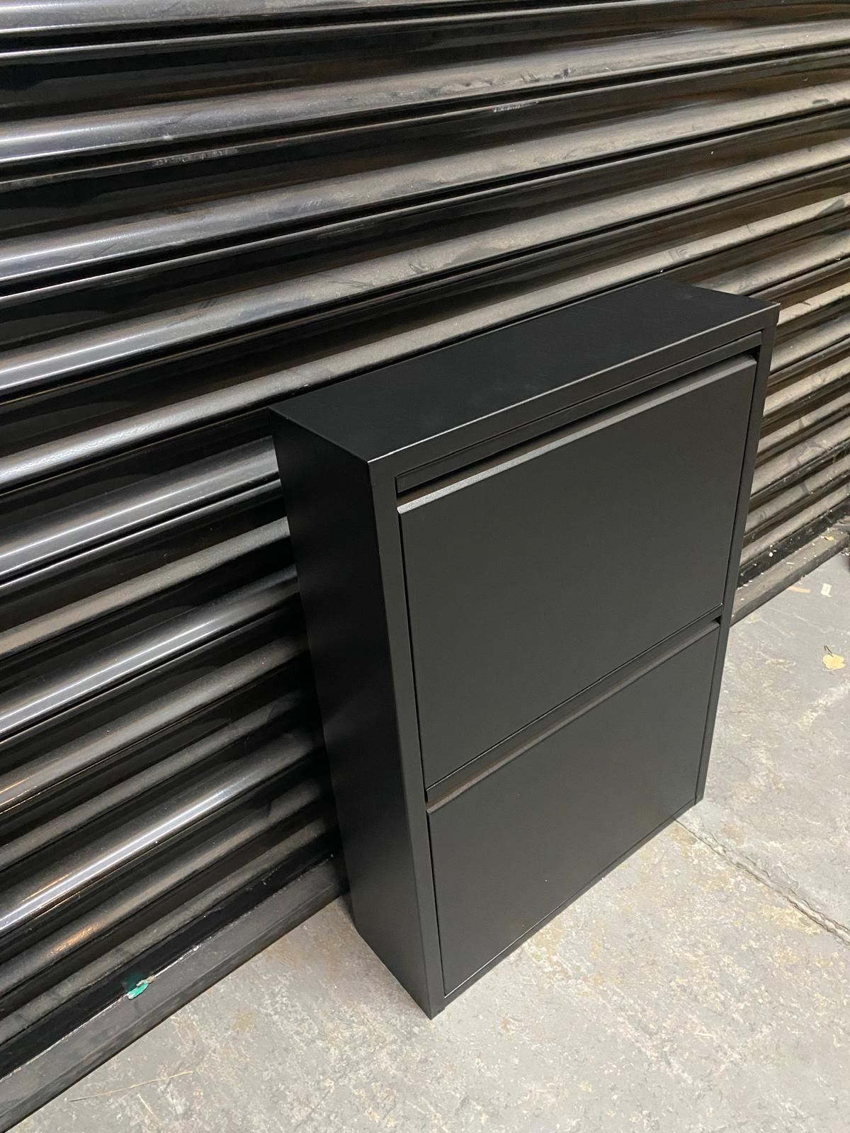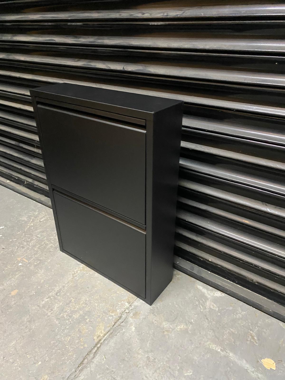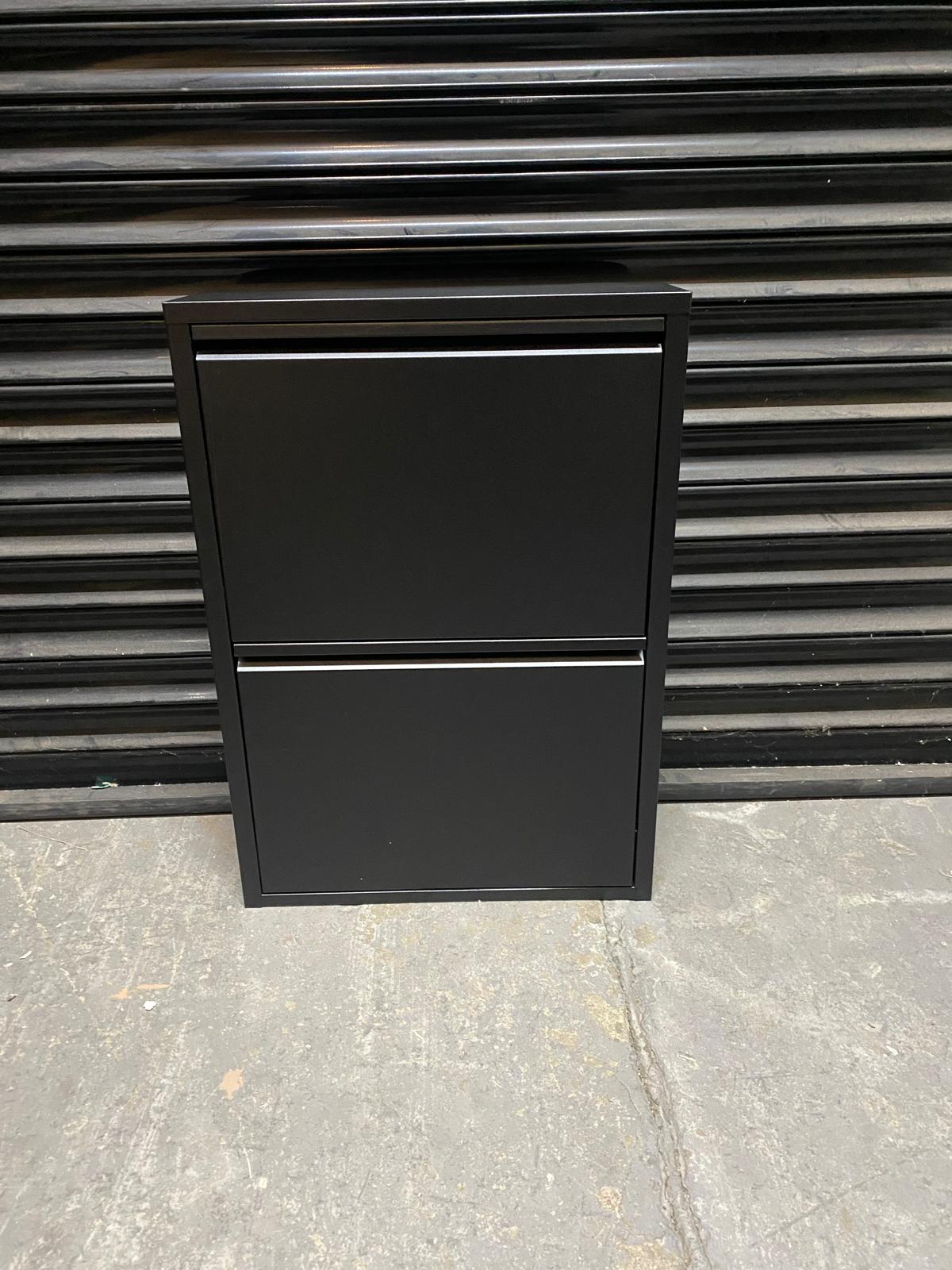REFURBISHED Olympos 2-Drawer Modern Slim Metal Shoe Cabinet BLACK