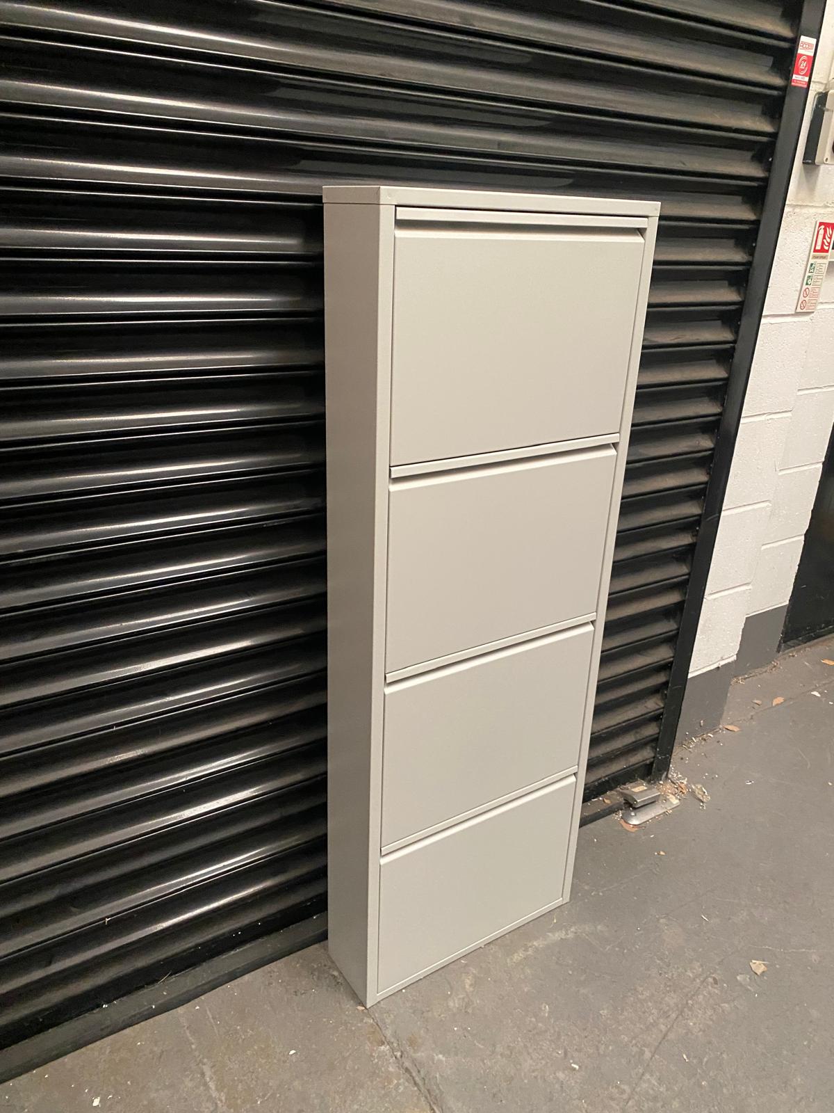 Atahome Troy 4-Drawer Modern Slim Metal Shoe Cabinet-Refurbished Grey